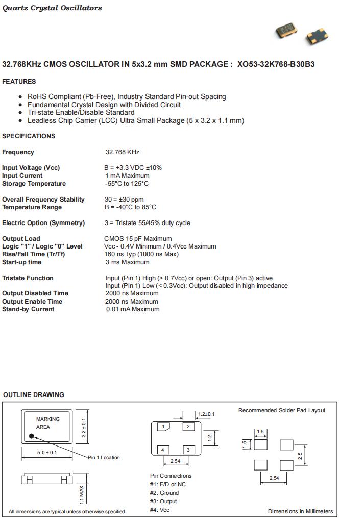 XO53-32K768-B30B3|32.768KHz|3.3V|Fortiming Crystal特點: