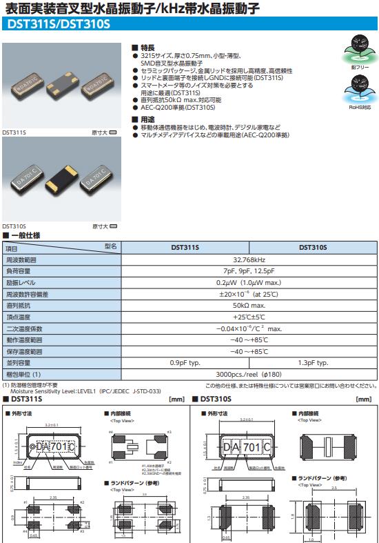 進口KDS晶振,DST310S時鐘晶體,1TJF090DP1AI007晶振,,頻率范圍32.768KHZ,厚度3.2*1.5mm,負載8PF,精度20ppm,應用于音頻設備、通信設備、影像設備等.